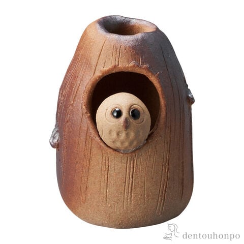テーブルや小さいスペースにも飾りやすい信楽焼特有の質感や多彩な表情に加え花の彩りを引き立てるようなかわいいフクロウが座っている小さな花瓶です。