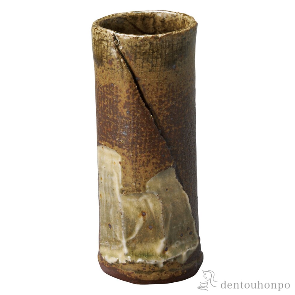 【信楽焼】 花瓶 山水筒 小
