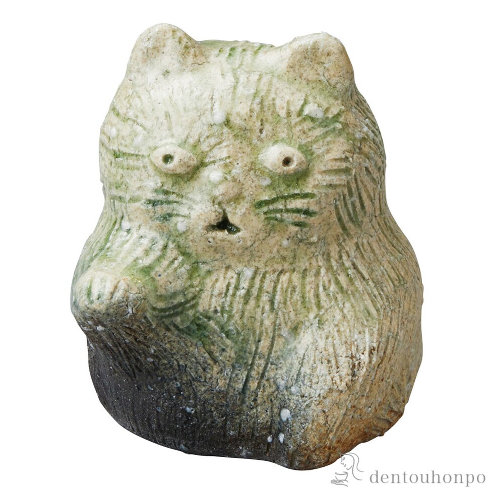 置物 窯守 ねこ 中 ( へちもん 木札名入れ有料 置物 玄関 コンパクト 人気 縁起物 信楽焼 結婚 出産 内祝い 引き出物 金婚式 誕生日プレゼント 還暦祝い )