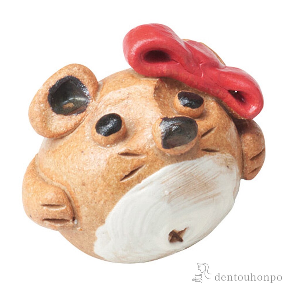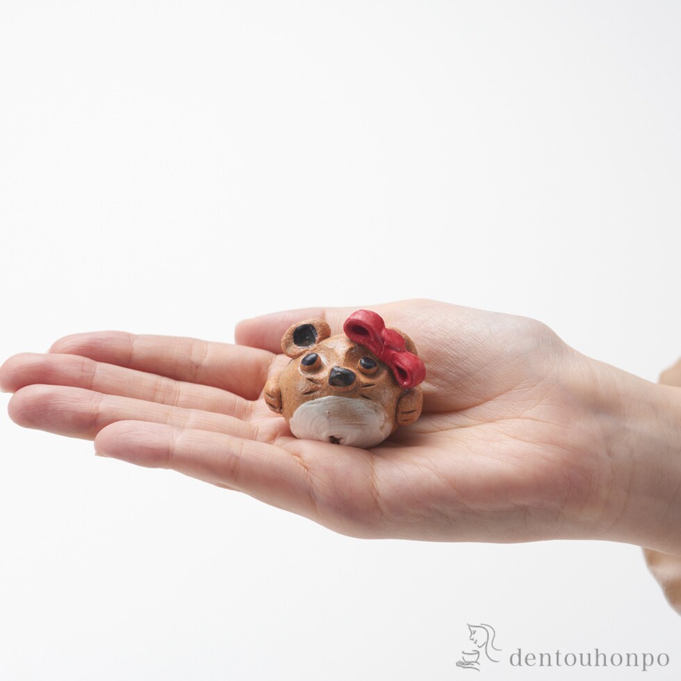 大はおにぎり、小は白玉団子くらいの豆狸の置物です。ひとつひとつが手作り・手描きでつくられました。素朴な陶土で細かくつくり、化粧土や鉄などで丁寧に絵付けしています。