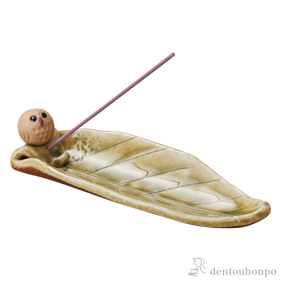 香皿 ふくろう 緑葉 長 ( へちもん お香立て インセンス インテリア 雑貨 香皿 信楽焼 結婚 出産 内祝い 引き出物 金婚式 誕生日プレゼント 還暦祝い 古希 )