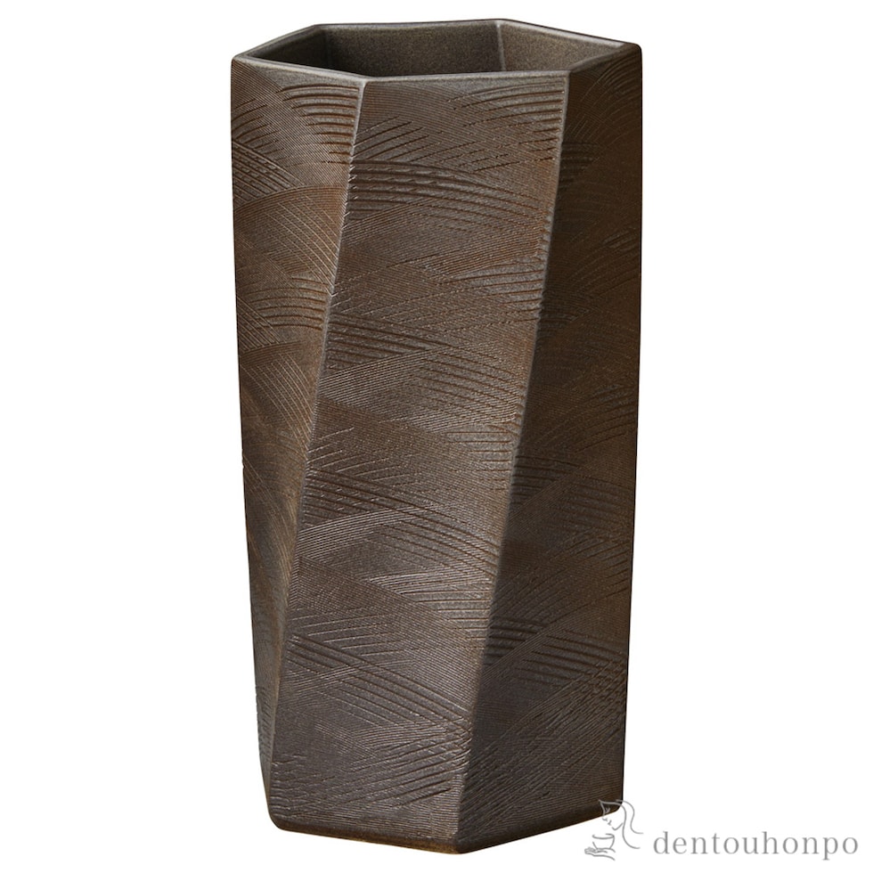 【信楽焼】 傘立て 扇ひねり 六角 黒
