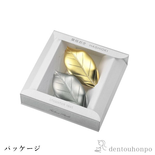 【燕金物】 椿ギフトセット 葉っぱの箸置き ゴールド1個 シルバー1個