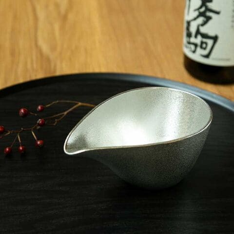 錫は古来より、「錫の器に入れた水は腐らない」、「お酒の雑味が抜けてまろやかになる」などといわれ、酒器や茶器などに用いられてきた金属。一旦片口に注ぐことでお酒の雑味が抜け、一層美味しくお酒を味わっていただけます。