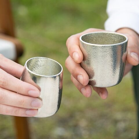 錫は古来より、「錫の器に入れた水は腐らない」、「お酒の雑味が抜けてまろやかになる」などといわれ、酒器や茶器などに用いられてきた金属。また、熱伝導率が高いので、冷酒を注ぐとその冷たさを瞬時に手肌で感じることができます。