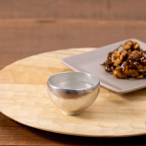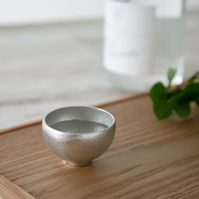 錫は古来より、「錫の器に入れた水は腐らない」、「お酒の雑味が抜けてまろやかになる」などといわれ、酒器や茶器などに用いられてきた金属。また、熱伝導率が高いので、冷酒を注ぐとその冷たさを瞬時に手肌で感じることができます。