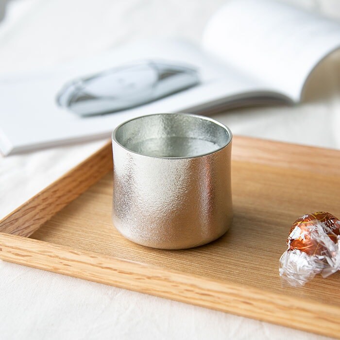 錫は古来より、「錫の器に入れた水は腐らない」、「お酒の雑味が抜けてまろやかになる」などといわれ、酒器や茶器などに用いられてきた金属。また、熱伝導率が高いので、冷酒を注ぐとその冷たさを瞬時に手肌で感じることができます。