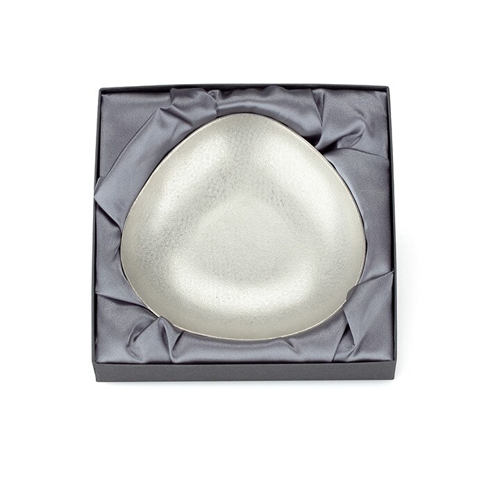 鋳物の肌感を生かした錫100%のプレートです。一つ一つ職人が手作業で仕上げています。錫は抗菌作用があるため、食器として安心してご使用いただけます。