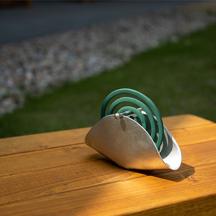 錫100%の鋳物でできた蚊遣りです。付属の棒に蚊取り線香をかけてご使用ください。錫の素材感を生かした温かみのある仕上がりは、風情ある夏のひとときを演出します。