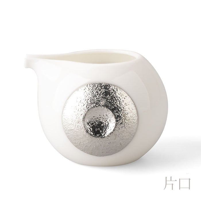 磁器と錫という異素材を組み合わせたユニークなデザインの片口です。