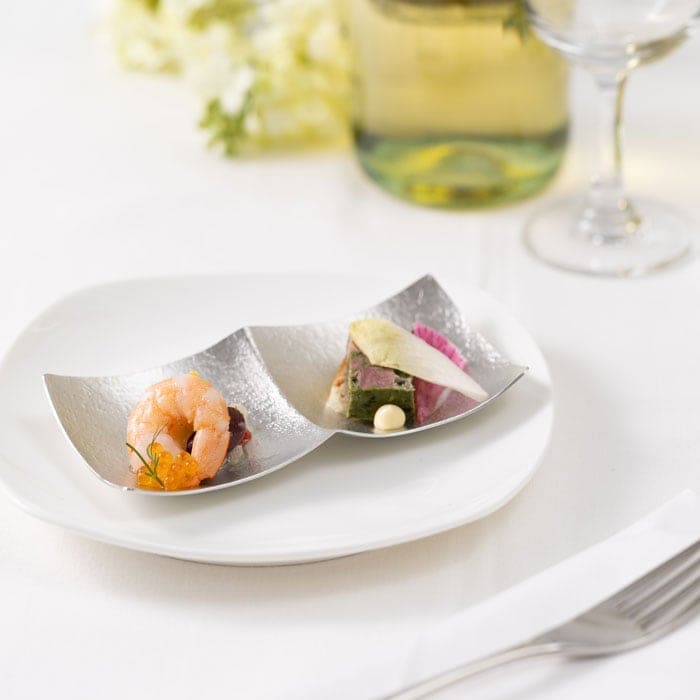 一つ一つ職人が手作業で仕上げています。錫は抗菌作用があるため、食器として安心してご使用いただけます。また、熱伝導率が高いため、冷蔵庫で器を1~11分冷やすだけで器全体がよく冷え、冷たいお料理を一層お楽しみいただけます。