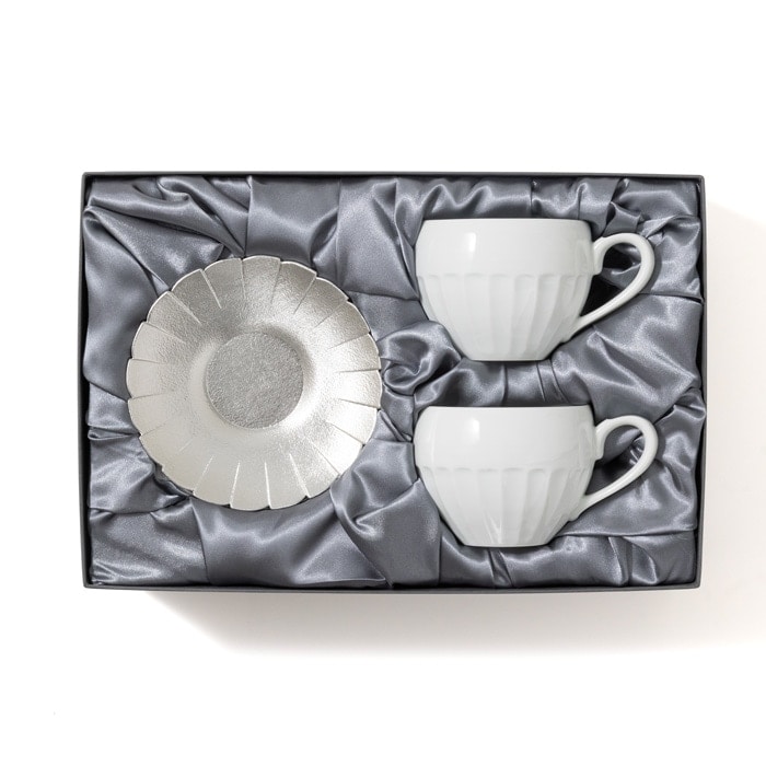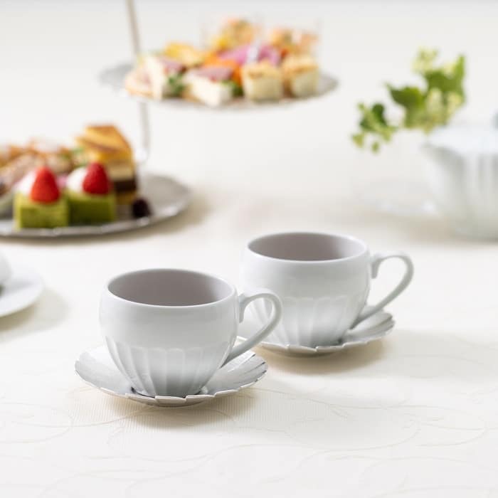 錫と白磁の異素材のコラボレーションでありながら、優美なシルエットがとても美しく上品です。お好みの紅茶とスイーツを用意して、午後のひとときを優雅に彩るアフタヌーンティーをお楽しみください。