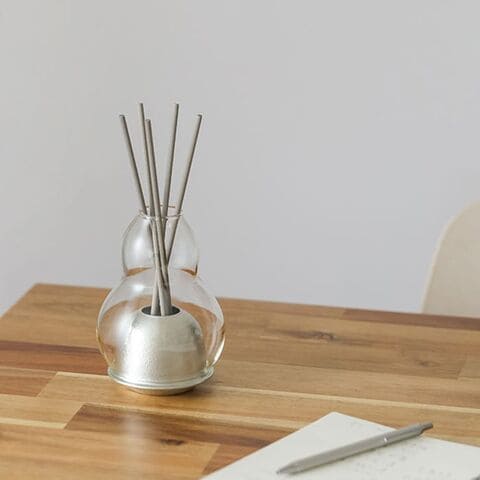 アロマリキッドを入れる錫101%の器とガラス製のカバーを組み合わせる美しいデザインは、インテリアとしても魅力的です。 リフレッシュ効果やリラックス効果が得られるアロマの香りを、リビングやベッドルームなどでお楽しみください。