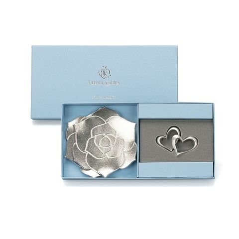 桂由美のバラ「ローズユミ」をモチーフにしたフラワートレー2点と箸置 - かさなる気持ちをセットにしました。『Yumi Katsura』オリジナルの化粧箱に入ったセットは、引き出物や結婚のお祝い、結婚記念日などのギフトとしておすすめです。