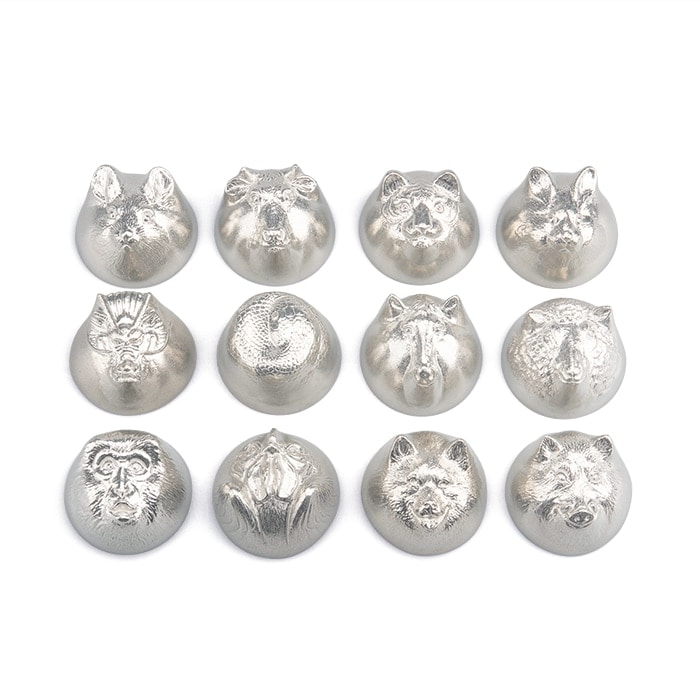 錆びにくく朽ちにくいため縁起が良いとされ親しまれてきた錫器にふさわしい、十二支のモチーフ。