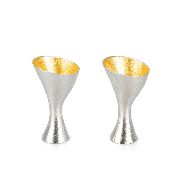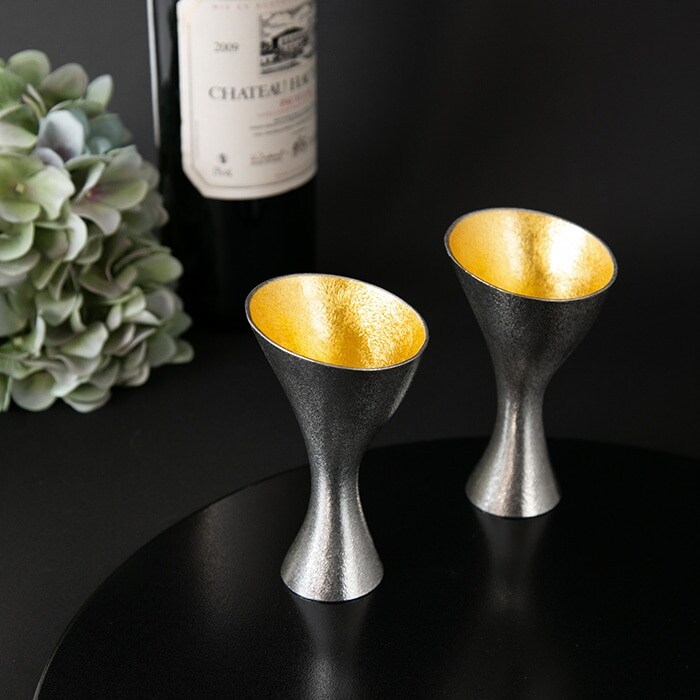 【高岡銅器】 ワイングラスペアセット Sライン 金箔 2個入り