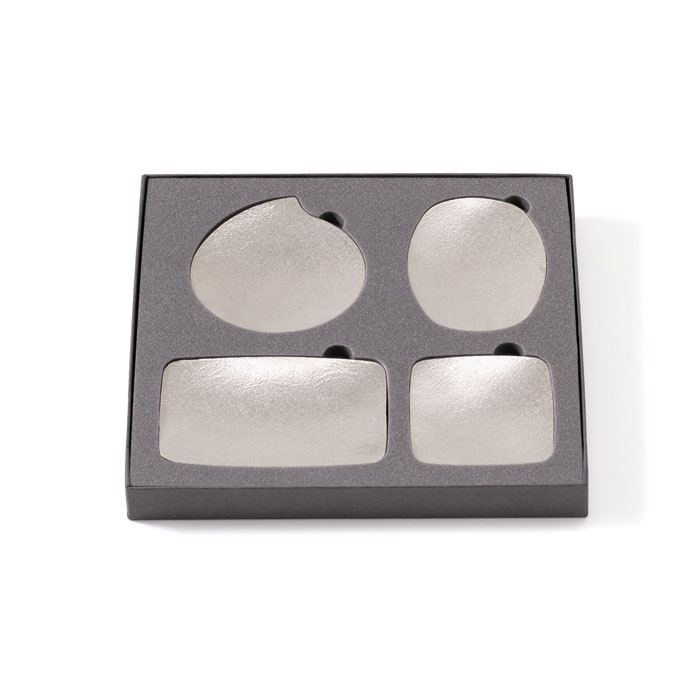 まいにち 豆皿セット 大 角長皿1個・角皿1個・丸皿1個・丸長皿1個 ( 能作 プレート 醤油皿 豆皿 和食 洋食 高岡銅器 結婚 出産 内祝い 引き出物 )