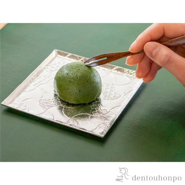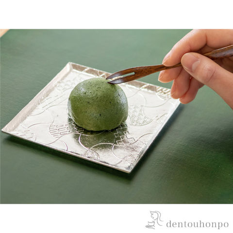分銅繋ぎの中に小紋柄をちりばめ、幸せがあつまるよう願いをこめたお皿です。