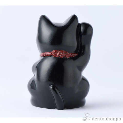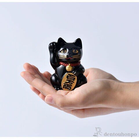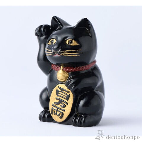 日本では古くから、黒猫は夜でも目が利くことから霊力を持つと考えられ「福猫」と呼ばれ、厄除けや魔除けの力があるといわれています。また、右手を挙げている招き猫は、「福を招く」猫。金運アップや、運気上昇を願う人に寄り添う招き猫です。