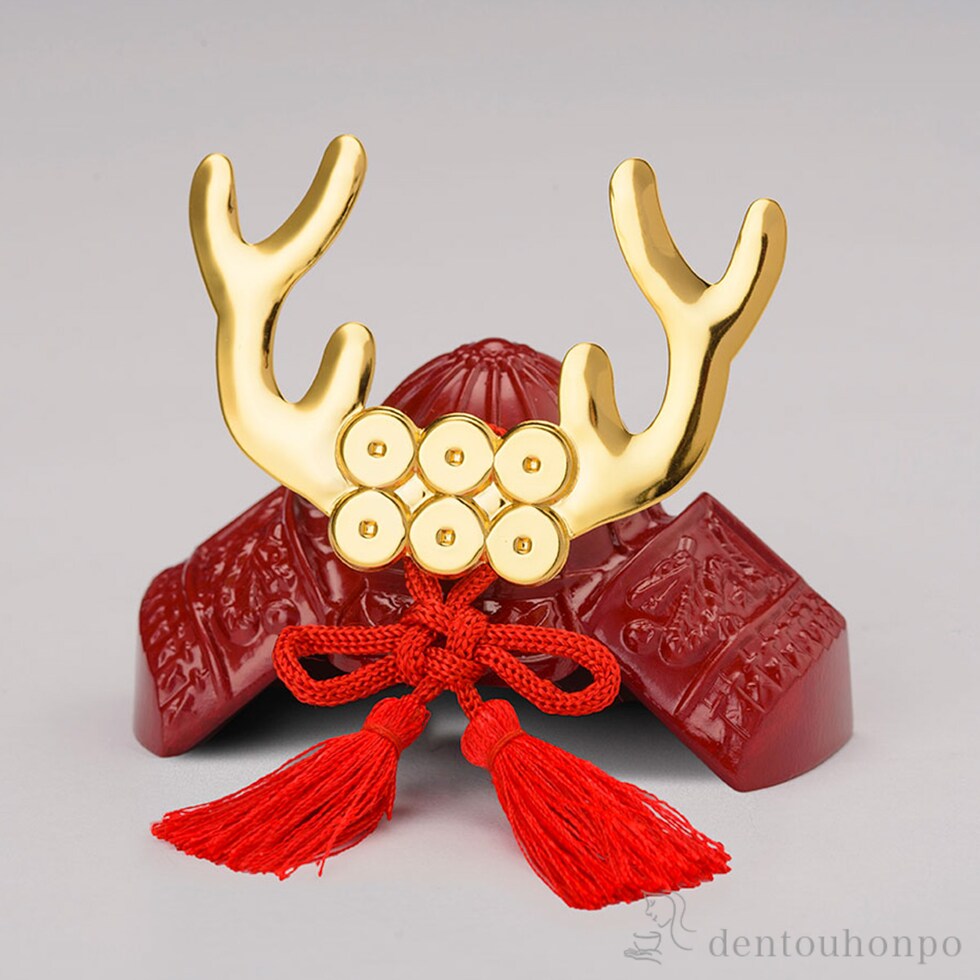 金属製の本格派の兜。小さいながらも重厚かつ精巧な仕上がりとなっております。