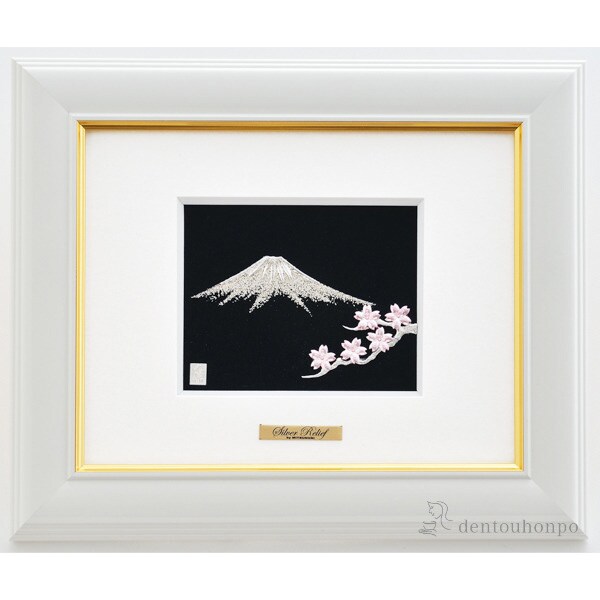 銀製 アートレリーフ 富士桜 1号 ( 額縁 飾り フレーム 人気 おすすめ 東京銀器(銀工芸) 周年 創立 上場 竣工 誕生日プレゼント 還暦祝い 古希 喜寿 米寿 )