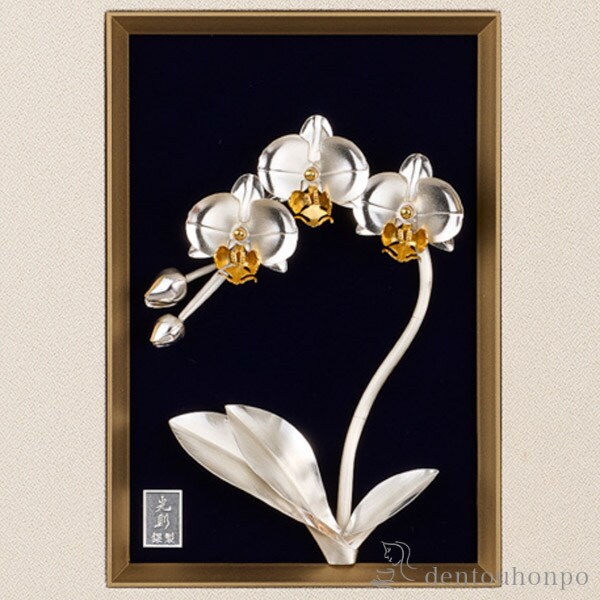 銀製 額 胡蝶蘭 1本立 C 1号・28g ( 額縁 飾り フレーム 人気 おすすめ 東京銀器(銀工芸) 周年 創立 上場 竣工 誕生日プレゼント 還暦祝い 古希 喜寿 米寿 )