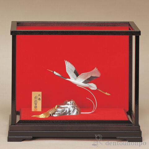 伝統を受け継ぐ東京銀器、名匠による純銀製の鶴の置物。優雅に空を舞う鶴の姿は、長寿と繁栄を願う縁起の良い象徴です。その精緻な輝きと洗練された造形が、飾る空間に気品と華やかさをもたらし、見る人を魅了する逸品です。