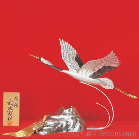 銀製 鶴 1羽 C 38g ( 武比古 木札名入れ有料 高級 コレクション 美術品 工芸品 伝統 東京銀器(銀工芸) 周年 創立 上場 竣工 開店 事務所移転 開業 )