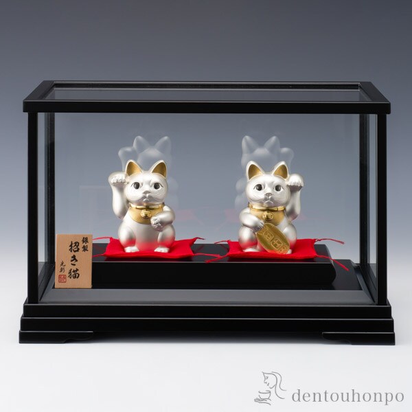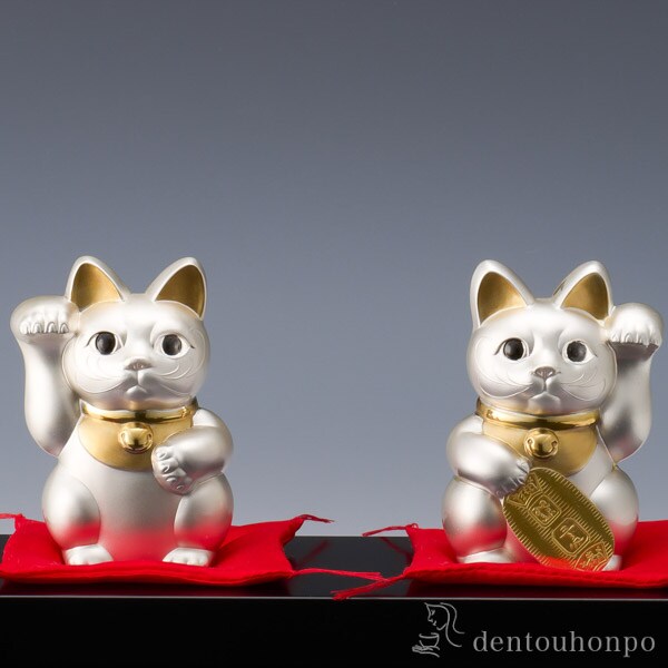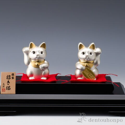 銀製 招き猫 セット 180g ( 置物 幸運 開運 まねきねこ 風水 東京銀器(銀工芸) 結婚 出産 内祝い 引き出物 金婚式 誕生日プレゼント 還暦祝い 古希 喜寿 )