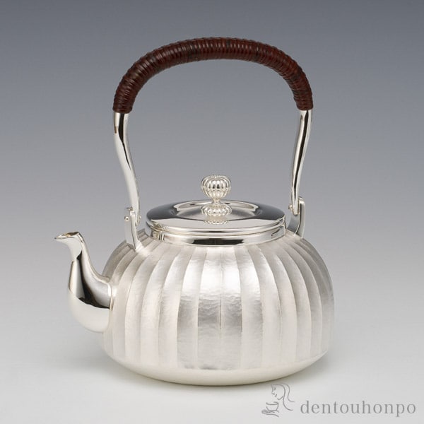 【東京銀器(銀工芸)】 純銀 湯沸 立筋 並型 B 4.5号