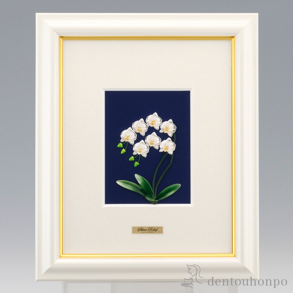 銀製 アートレリーフ胡蝶蘭 白 ( 額縁 飾り フレーム 人気 おすすめ 東京銀器(銀工芸) 周年 創立 上場 竣工 誕生日プレゼント 還暦祝い 古希 喜寿 )