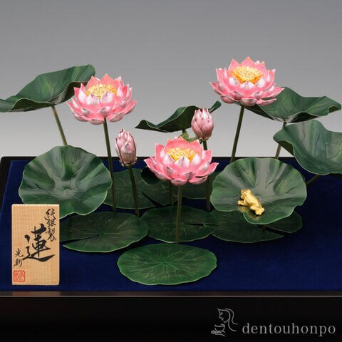 銀製 蓮 純金かえる付(3g) A 銀320g ( 高級 コレクション 美術品 工芸品 伝統 東京銀器(金工芸) 周年 創立 上場 竣工 開店 事務所移転 開業 )