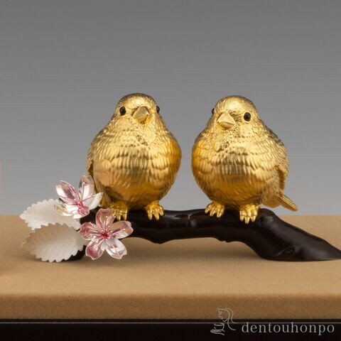 日本の伝統工芸「東京銀器」の職人による純金製置物。豊かな伝統と職人の技が息づいています。ご家宝として代々受け継ぐ価値ある存在。愛らしい雀の姿に癒されます。贈り物としてもおすすめで、様々な場面で喜ばれる逸品です。