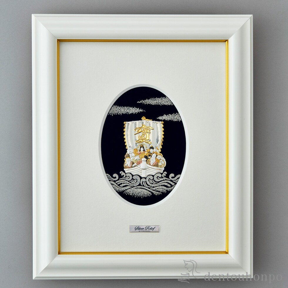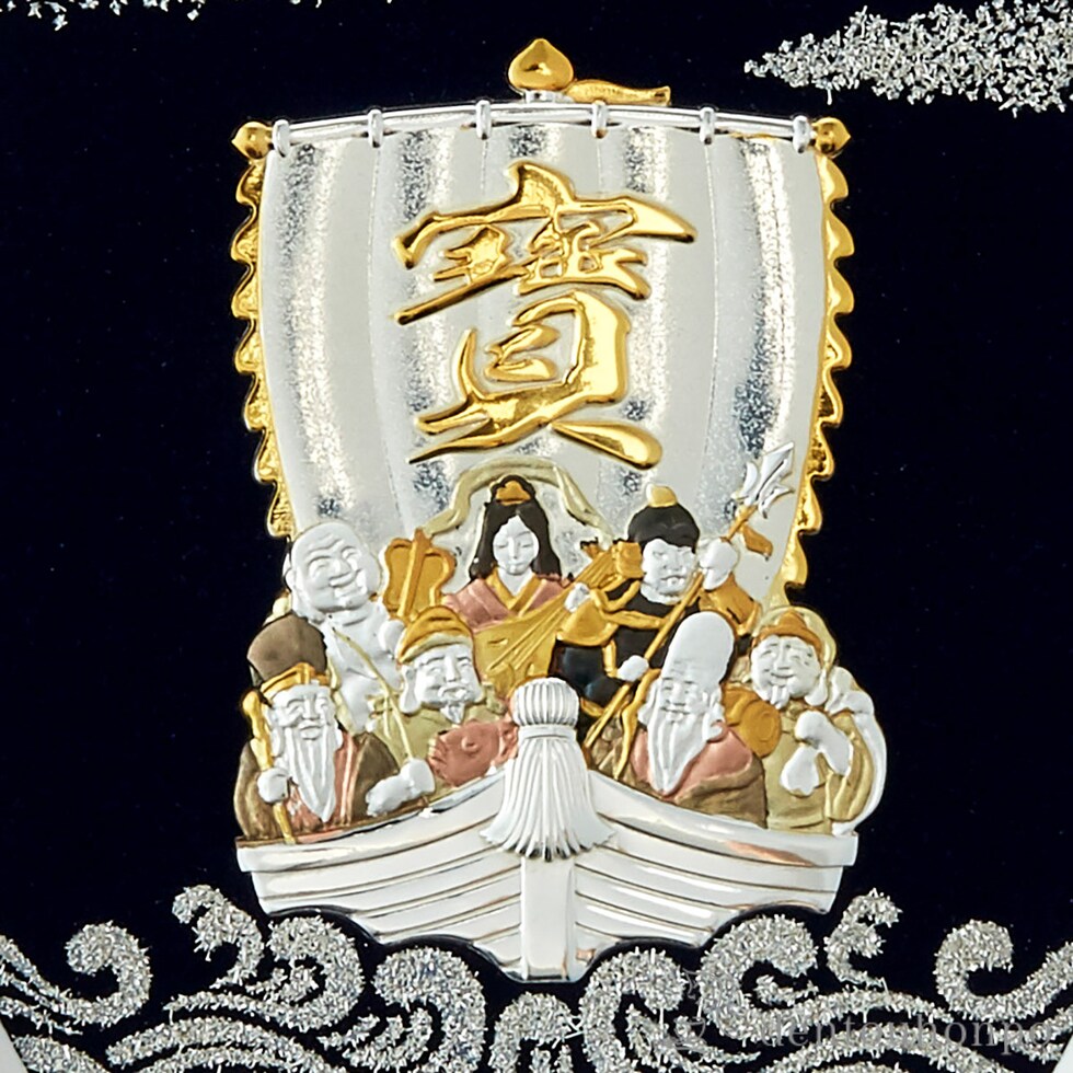 純銀 アートレリーフ 七福神宝船 12g ( 額縁 飾り フレーム 人気 おすすめ 東京銀器(銀工芸) 周年 創立 上場 竣工 誕生日プレゼント 還暦祝い 古希 喜寿 )