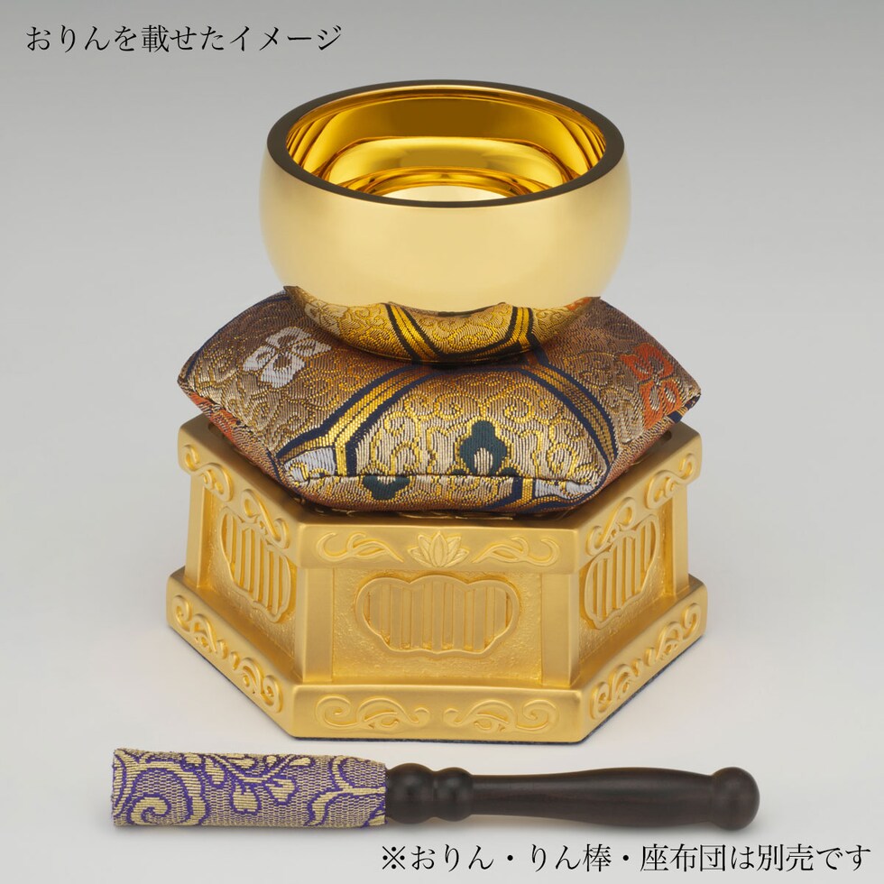 純金「りん台」です。※おりん・りん棒等は付属しません。細部まで美しいデザインと、純金の煌びやかな輝きは、よりお仏壇を美しく演出します。