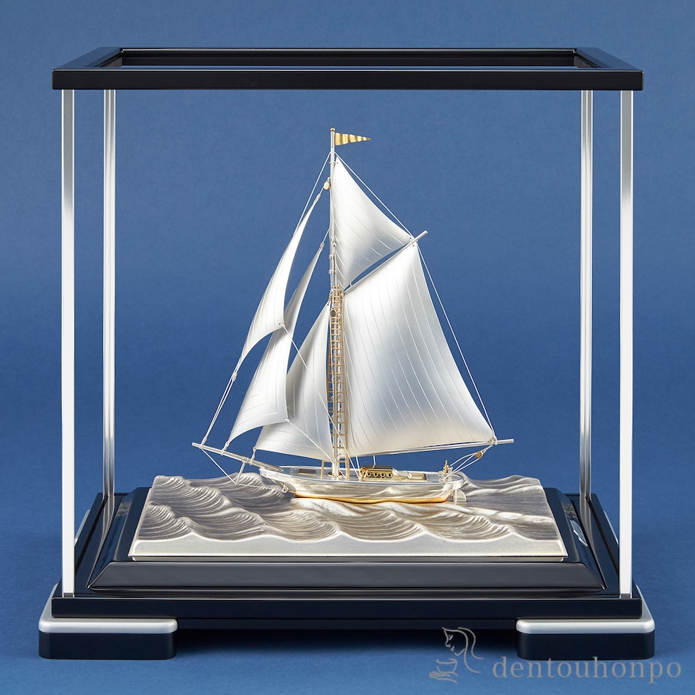 銀製 ヨット 1本マスト A・180g ソリッドケース ( 木札名入れ有料 高級 コレクション 美術品 工芸品 伝統 東京銀器(銀工芸) 周年 創立 上場 竣工 開店 )
