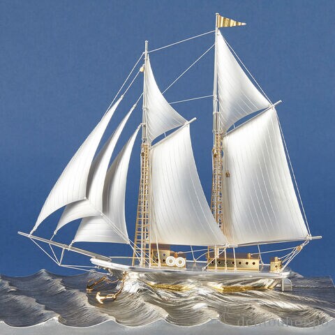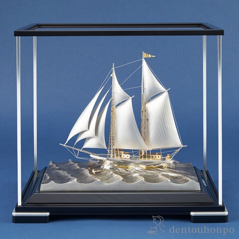 銀製 ヨット 2本マスト A・435g ソリッドケース ( 木札名入れ有料 高級 コレクション 美術品 工芸品 伝統 東京銀器(銀工芸) 周年 創立 上場 竣工 開店 )