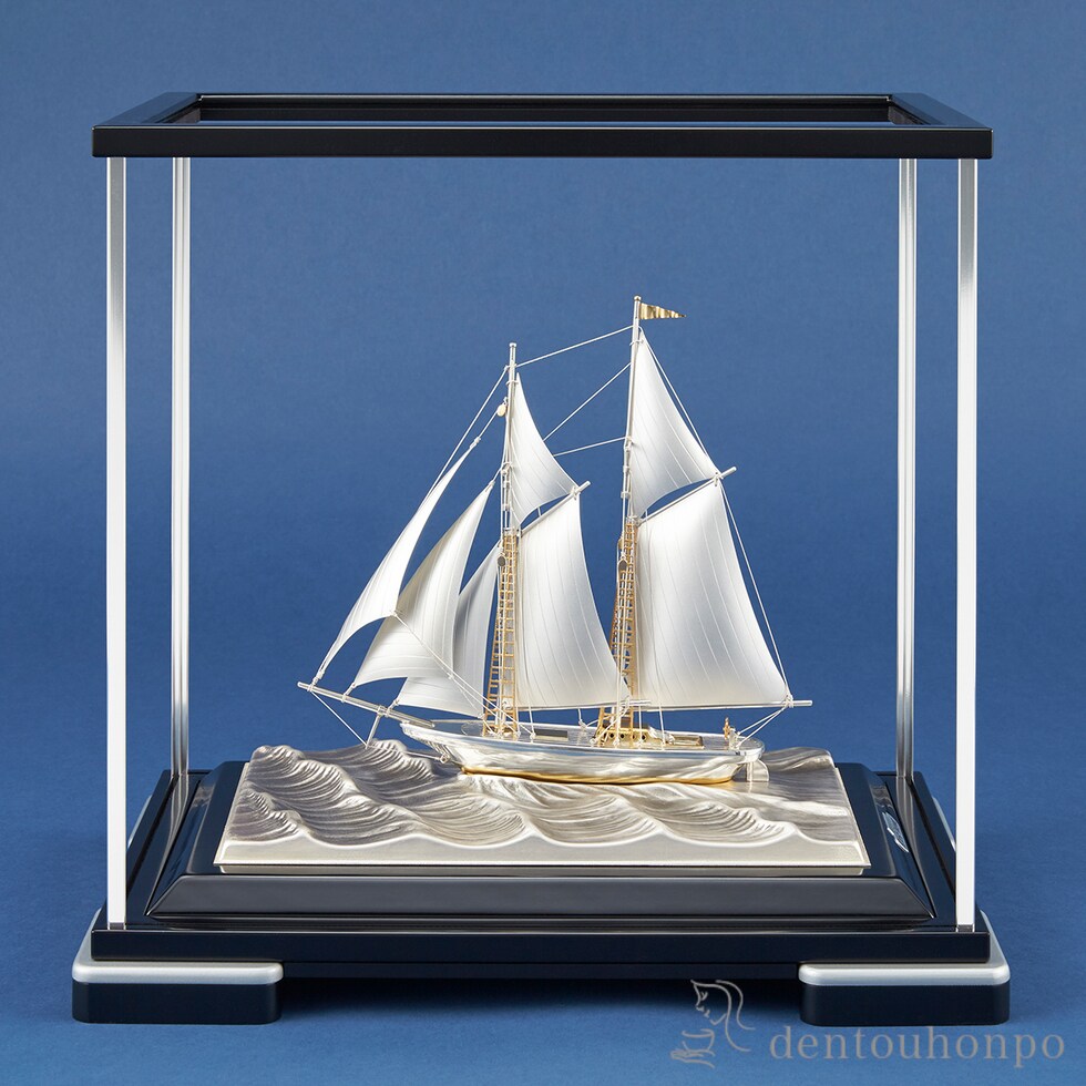銀製 ヨット 2本マスト C・197g ソリッドケース ( 木札名入れ有料 高級 コレクション 美術品 工芸品 伝統 東京銀器(銀工芸) 周年 創立 上場 竣工 開店 )