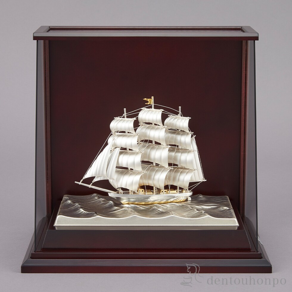 銀製 帆前船 C・140g スロープケース ( 木札名入れ有料 高級 コレクション 美術品 工芸品 伝統 東京銀器(銀工芸) 周年 創立 上場 竣工 開店 )