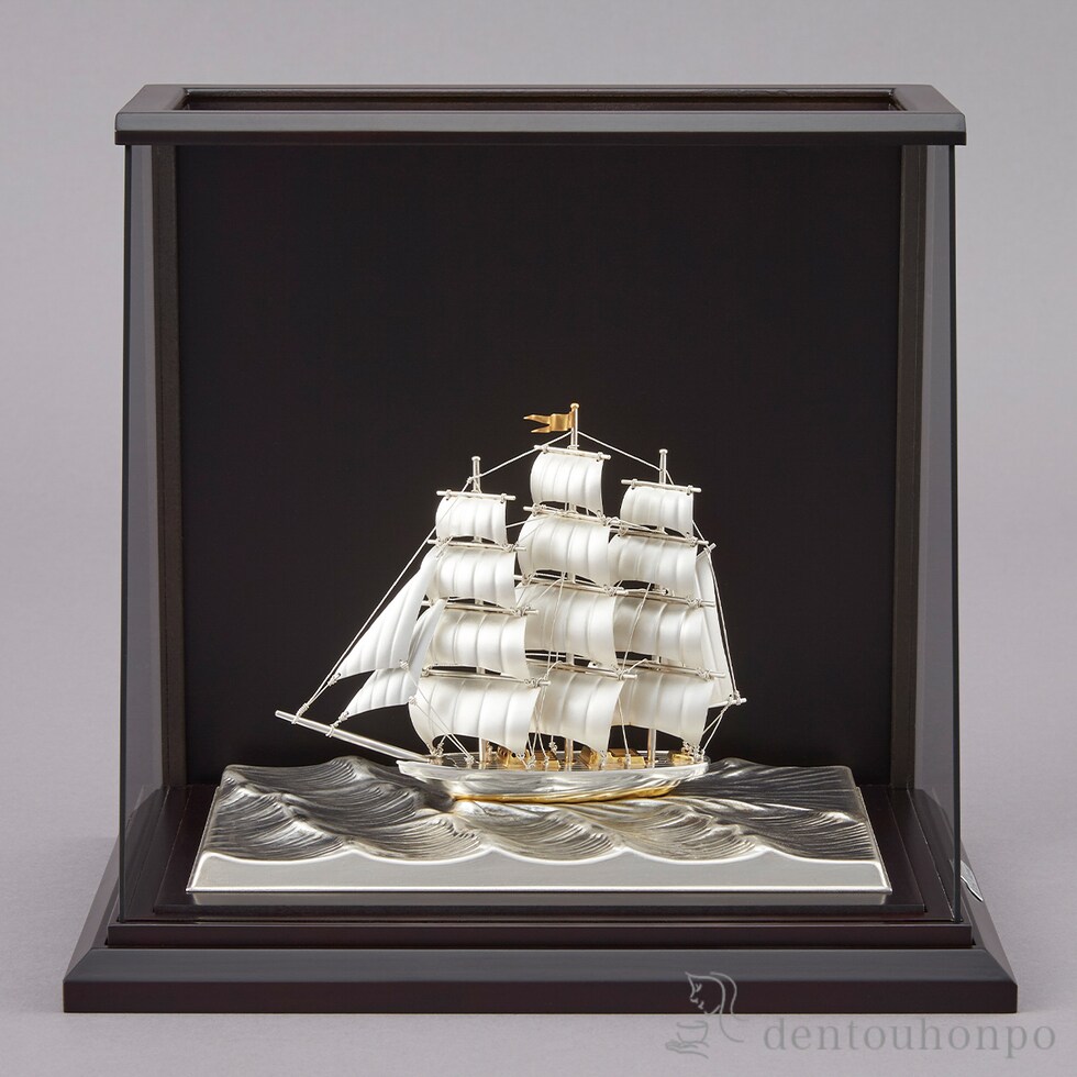 銀製 帆前船 D・70g スロープケース ( 木札名入れ有料 高級 コレクション 美術品 工芸品 伝統 東京銀器(銀工芸) 周年 創立 上場 竣工 開店 事務所移転 )