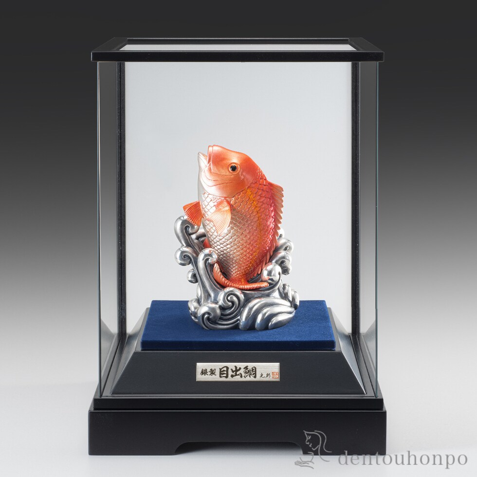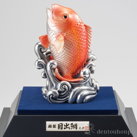 日本の伝統工芸「東京銀器」の職人による、縁起の良い目出鯛をモチーフにした銀製置物。豊かな伝統と職人の技が息づいています。細部にまでこだわった逸品が、心豊かなひとときを演出します。贈り物としてもおすすめで、お祝いや記念品など様々な場面でお喜びいただけます。