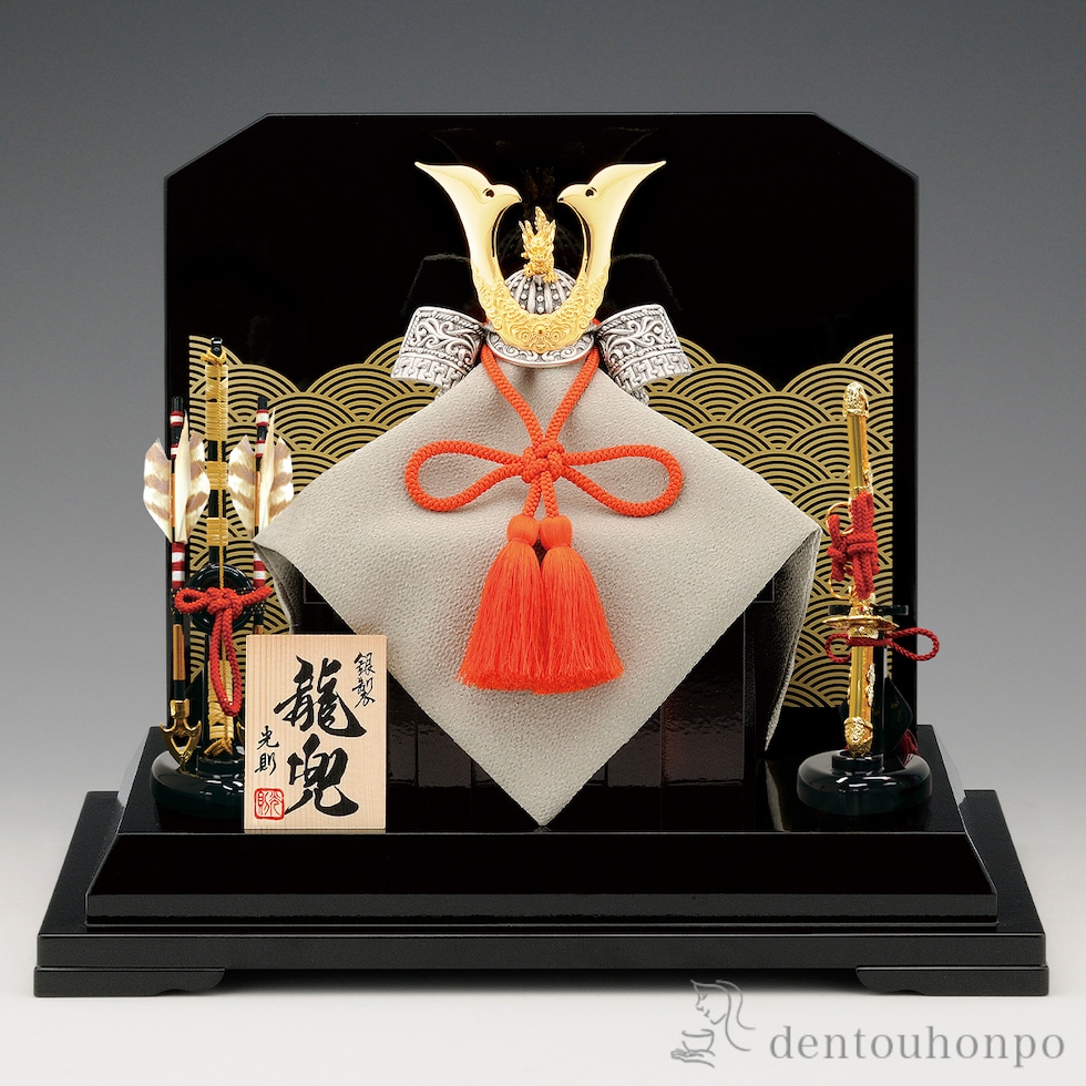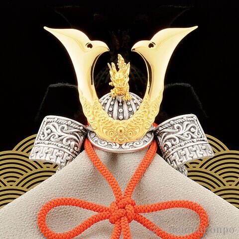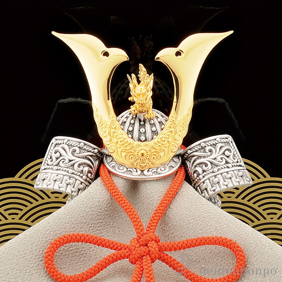 純銀で見事に表現した兜です。端午の節句に鎧、兜を飾り、鯉のぼりを立てて、男の子がたくましく成長することを願う習わしは、日本のゆかしい伝統文化です。お子様の光輝く未来を心からお祈りいたします。