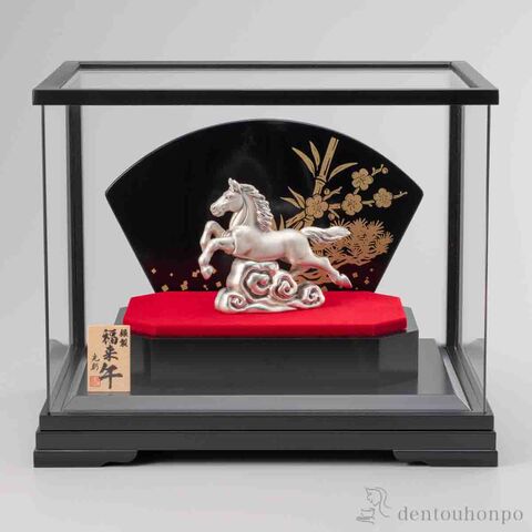 銀製 福来 「午」 小 ガラスケース付き ( 木札名入れ有料 午 馬 十二支 2026年 開運 東京銀器(金工芸) 結婚 出産 内祝い 引き出物 金婚式 )