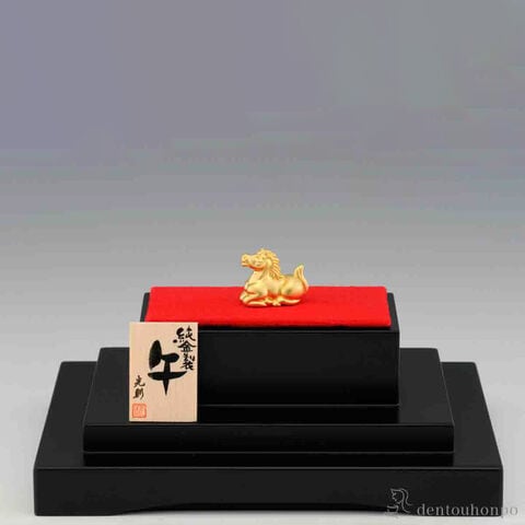 純金製 招福 「午」 K24 3g ガラスケース付き ( 木札名入れ有料 お正月 新年 午 馬 十二支 2026年 開運 東京銀器(金工芸) 結婚 出産 内祝い )