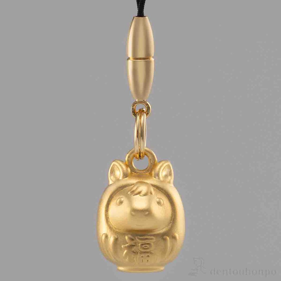 【東京銀器(金工芸)】 純金製 干支 だるま ストラップ 「午」 K24 2.5g