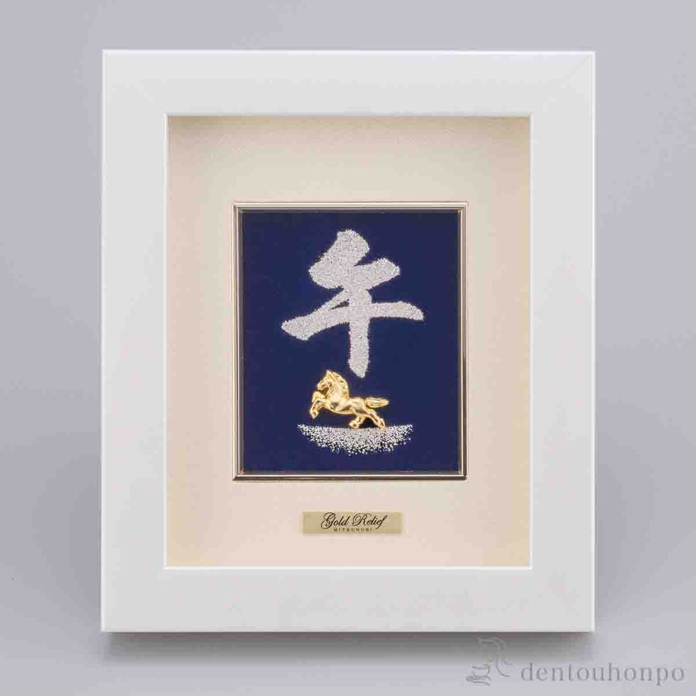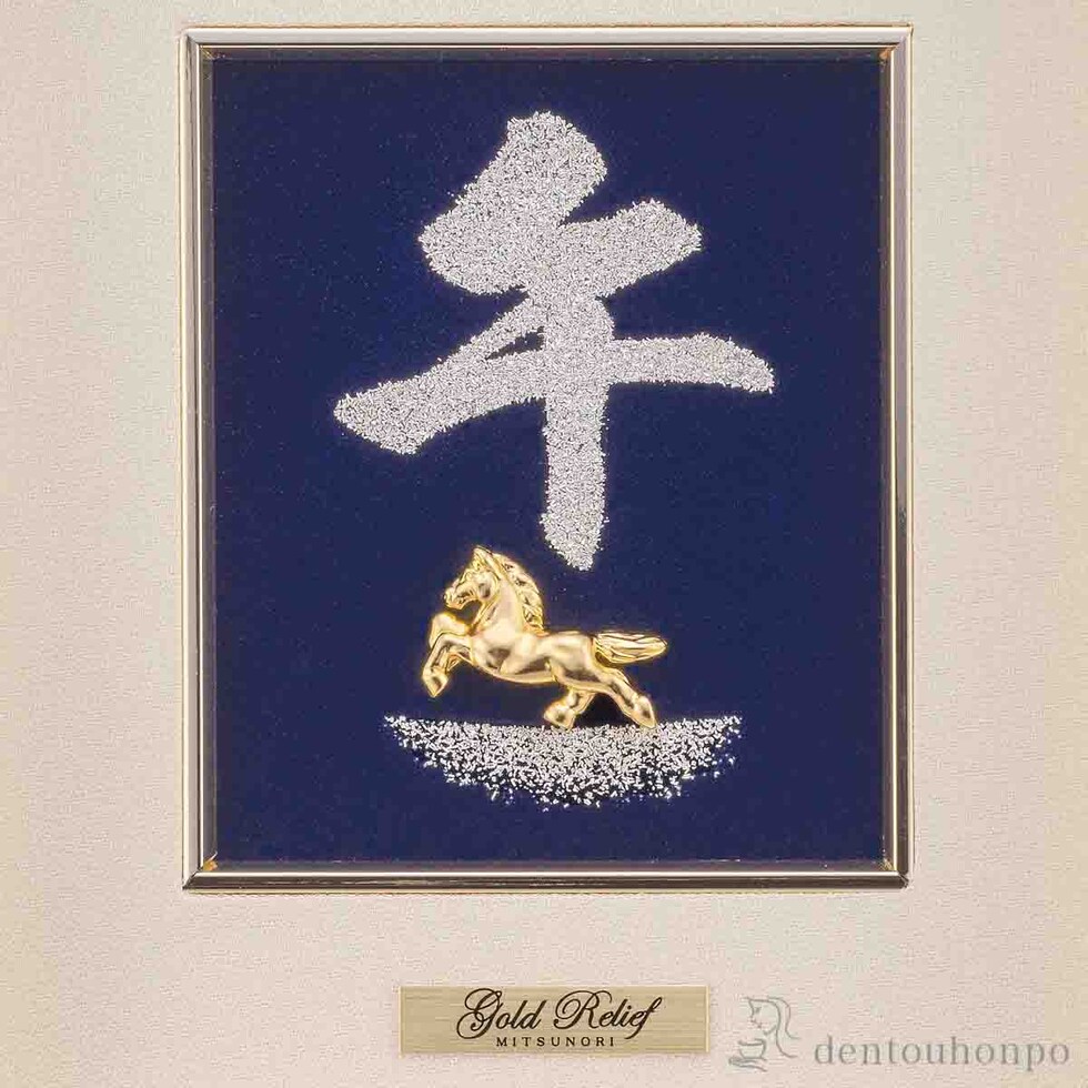 純金製 アートレリーフ 「午」 K24 2g 足付 ( お正月 新年 午 馬 十二支 2026年 開運 東京銀器(金工芸) 結婚 出産 内祝い 引き出物 )