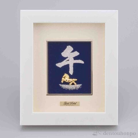 角度によって表情を変える立体的なレリーフ。壁にかけても棚に置いてもお飾りいただける足付き額です。古来より人と深く関わり、神の使いとしても大切にされてきた馬。行動力や力の源とされ、開運・立身出世の象徴といわれています。さらに「物事が"うま"くいく」「幸運が駆け込んでくる」といわれ、縁起の良い動物とされています。