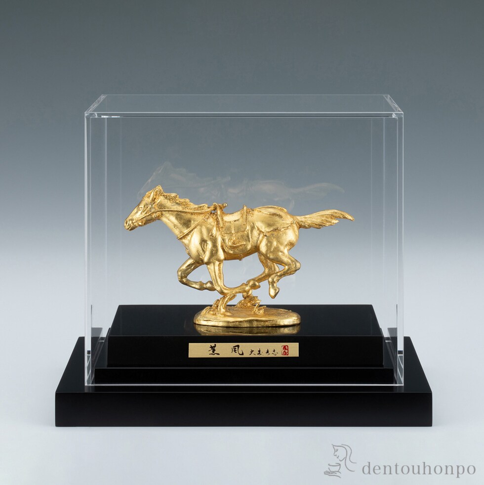 薫風 (本金箔) アクリルケース・木製塗板・桐箱付 ( 木札名入れ有料 午 馬 十二支 2026年 開運 高岡銅器 結婚 出産 内祝い 引き出物 金婚式 )