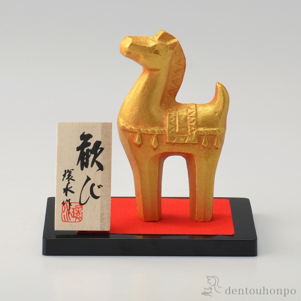 歓び 小 プラスチック台・立札付 ( 木札名入れ有料 午 馬 十二支 2026年 開運 高岡銅器 結婚 出産 内祝い 引き出物 金婚式 誕生日プレゼント 還暦祝い )