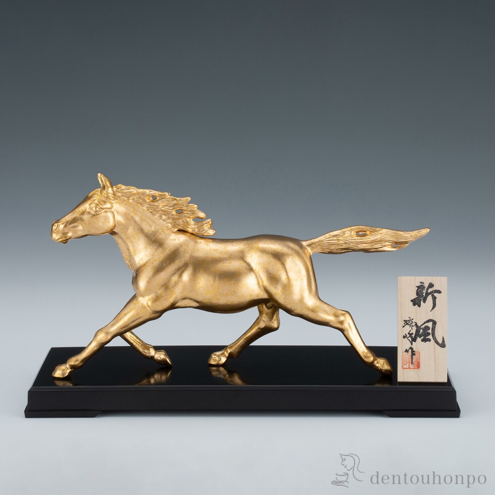 新風 プラスチック台・立札付 ( 木札名入れ有料 午 馬 十二支 2026年 開運 高岡銅器 結婚 出産 内祝い 引き出物 金婚式 誕生日プレゼント 還暦祝い 古希 )
